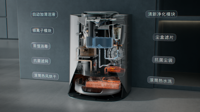 同时,3i自研的净水循环系统则让清洁过程首次实现了“闭环”。通过亚沸蒸馏技术对污水进行干湿分离,并将空气中的水分子凝结成可用清洁水,设备在使用过程中无需人工换水,也不依赖上下水安装。这一系统已获得两项专利授权,被业内视为清洁设备“自净化”机制的重要进展。