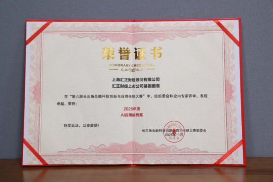 近期,2025中国金融科技创新与应用外滩高峰论坛暨第六届长三角金融科技创新与应用全球大赛总决赛落幕。作为证监会首批认证的证券投资咨询机构,上海汇正财经顾问有限公司凭借两大核心创新项目,一举斩获“2025年度金融科技·金融机构最佳创新奖”与“2025年度AI应用优秀奖”,在这场汇聚政产学研投各界力量的顶级盛会上,交出了一份亮眼的“科技赋能金融”答卷,也以实力回答了:汇正财经靠谱吗?