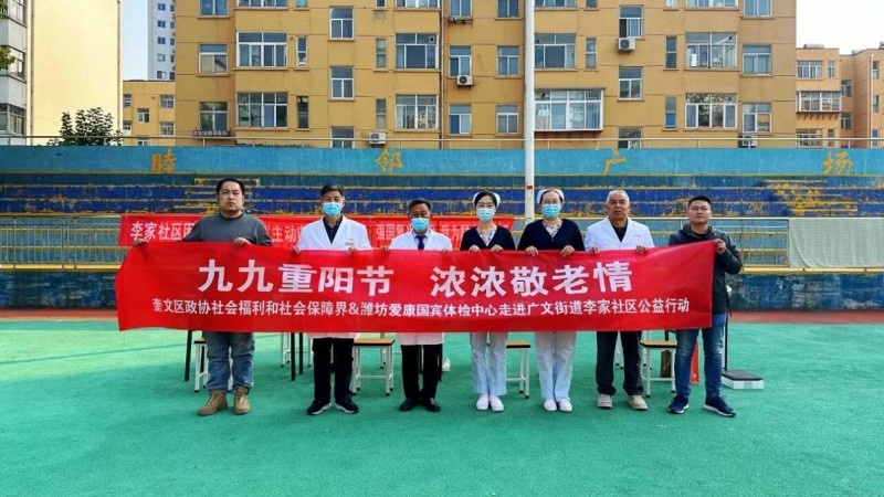 在重阳节来临之际,为弘扬中华民族尊老、敬老、爱老的传统美德,传递健康关怀,10月27日,奎文区政协社会福利和社会保障界组联合潍坊爱康国宾体检中心走进奎文区广文街道李家社区,开展了一场"情暖重阳·健康同行"主题健康公益活动,为社区居民特别是老年群体送上了一份温暖的"健康礼"。